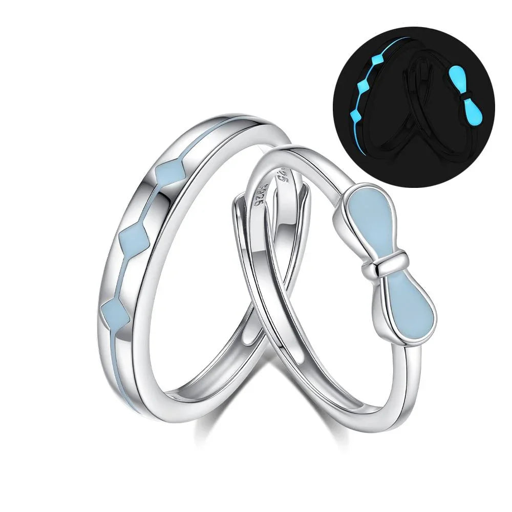 Women's Dream Bow Band (1.15g approx): Showcases a charming and delicate bow-shaped design. Crafted entirely with light blue luminous material, the bow emits a soft, enchanting glow in the dark, symbolizing the sweet surprises and tender affection shared between lovers.