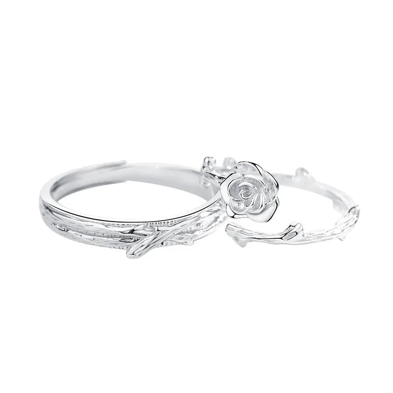 Crafted in lustrous S925 sterling silver, this pair embodies love’s duality: the rose’s tender bloom and the vine’s steadfast embrace. Designed for souls intertwined, each adjustable ring is a wearable vow — delicate yet enduring, like love itself.
