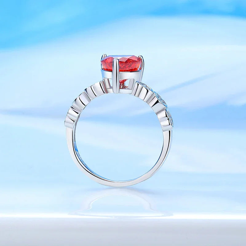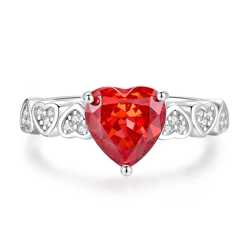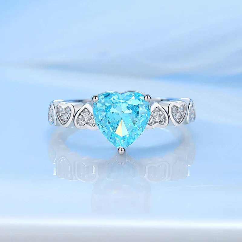 Speak the language of love with this ethically born jewel. The Whispering Heart Ring centers an 8x8mm precision-cut heart-shaped Liora lab gem – a symbol as timeless as your bond. Choose your love's hue: Ocean Depth, Sunset Kiss, Starlight, or Ruby Passion. Delicate heart-shaped Liora gems grace the band, echoing the center stone's whisper. Cast in tarnish-resistant S925 Sterling Silver and sized for every love story (US 6-9).